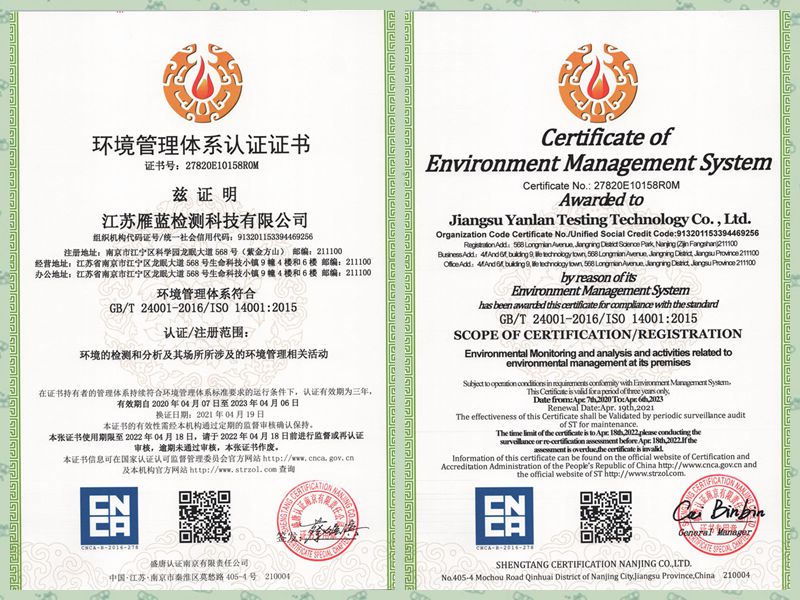 資質(zhì) :CMA 環(huán)境檢測(cè)資質(zhì), ISO14000體系認(rèn)證,ISO9000質(zhì)量管理體系認(rèn)證